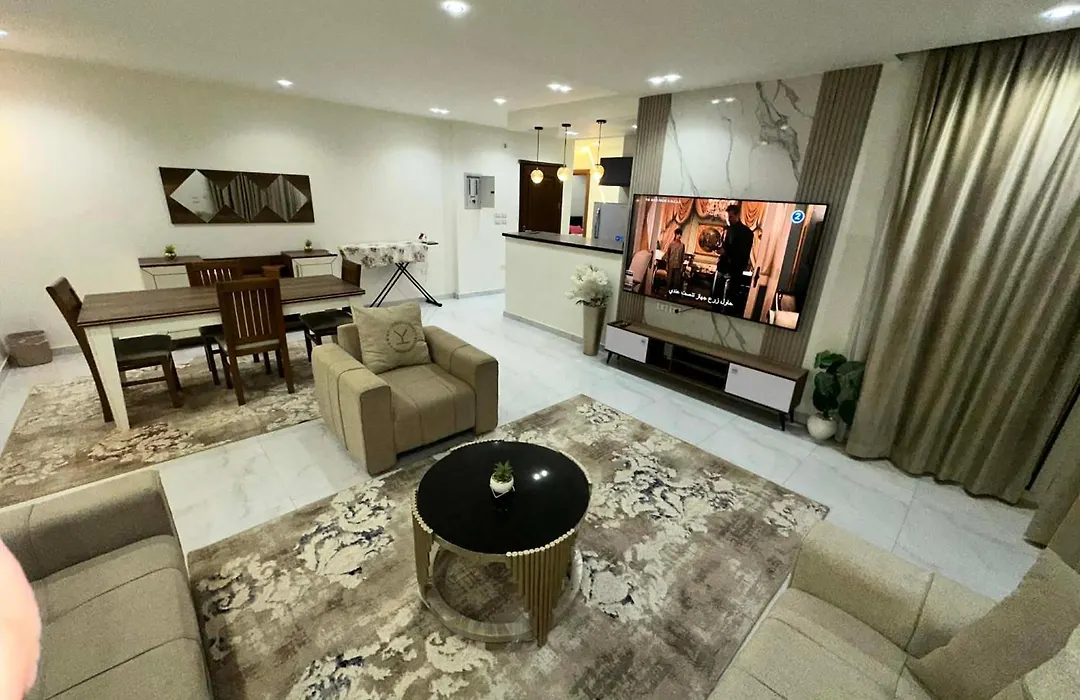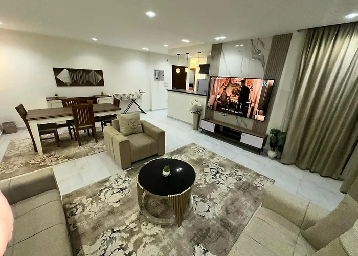 Las habitaciones del apartamento شقه فندقيه بالمهندسين cuentan con una cocina bien equipada. La estación de autobuses Al-Tariq Al-Abyad se encuentra a unos cuantos pasos de este apartamento. Este alojamiento se abre a una terraza.